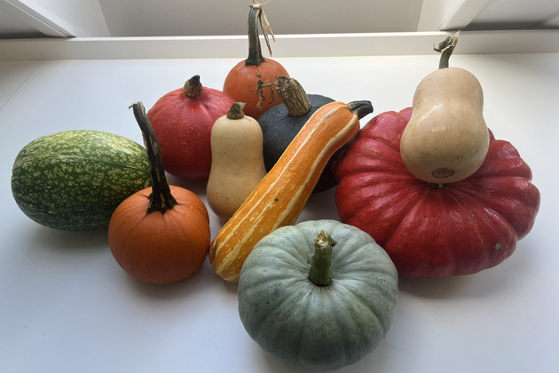 The varieties evaluated were Rouge vif d’etampes, Yellow Marrow, Sweet Mama Hokkaido, Uchiki Kuri Hokkaido, Crown Prince, Halloween, and Butternut. They were all sourced from Haneborg Farm near Drøbak, outside Oslo.